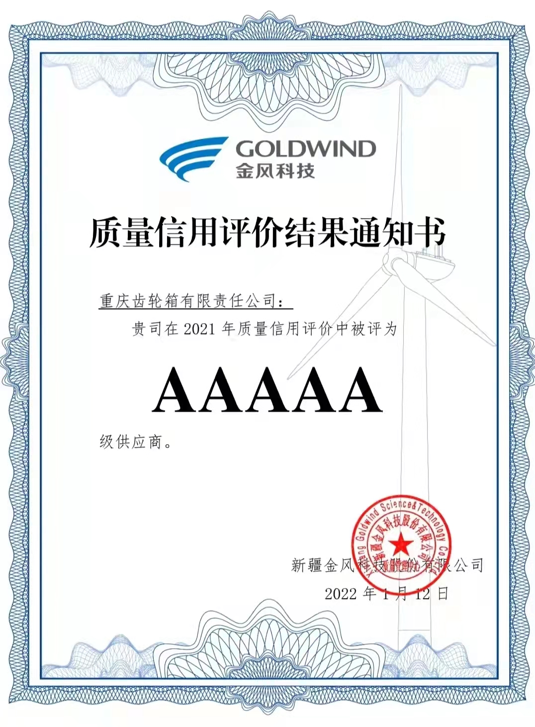 近日,中國船舶重齒公司憑借著優(yōu)質(zhì)的產(chǎn)品和出色的服務,在金風科技2021年質(zhì)量信用評價中再一次被評為AAAAA級供應商,這是重齒公司連續(xù)三年被評為5A級供應商!2021年對于重齒公司來說是充滿巨大挑戰(zhàn)的一年。這一年,風力發(fā)電受到平價上網(wǎng)政策的沖擊,行業(yè)價格戰(zhàn)空前白熱,但是重齒公司始終不遺余力,全力為金風科技提供優(yōu)質(zhì)的產(chǎn)品和服務雙方攜手共進,繼續(xù)互為偏航變槳減速器產(chǎn)品的最大合作伙伴。再獲殊榮,不僅金風對重齒產(chǎn)品質(zhì)量和服務質(zhì)量的認可,更是鼓勵和鞭策。公司將在2022年繼續(xù)秉承“以客戶為中心”的理念,積極應對市場新動態(tài),提升科技創(chuàng)新能力,加強人才隊伍建設,為客戶提供更加優(yōu)質(zhì)的產(chǎn)品和高效的服務