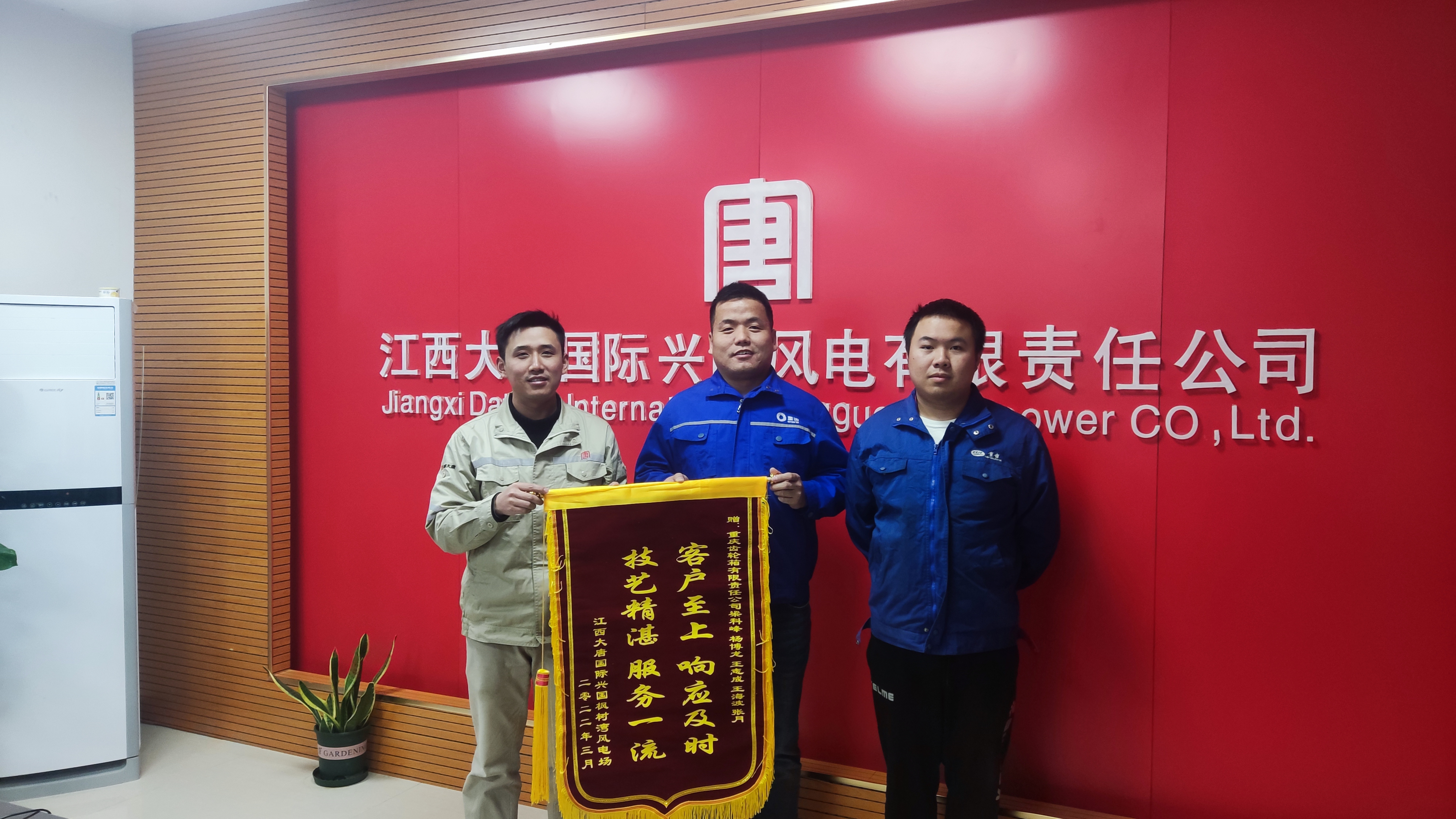 2022年3月8日,重齒公司獲得江西大唐云峰嶂風(fēng)電場贈予錦旗一面。錦旗寫道:客戶至上、響應(yīng)及時,技藝精湛服務(wù)一流。這短短的16個字包含了梁科峰、楊博龍等五名運維同志連續(xù)多天的汗水和辛勞。在極端天氣凍雨影響,道路結(jié)冰、設(shè)備無法進(jìn)場作業(yè)等困難面前,他們各司其職,加班加點,用最短時間圓滿完成消缺工作。他們辛勤付出、不辭辛苦、任勞任怨的工作精神,把業(yè)主的需求放在第一位的工作態(tài)度,得到了業(yè)主的高度認(rèn)可,也為公司實現(xiàn)首季開門紅匯聚了強勁的精神力量。